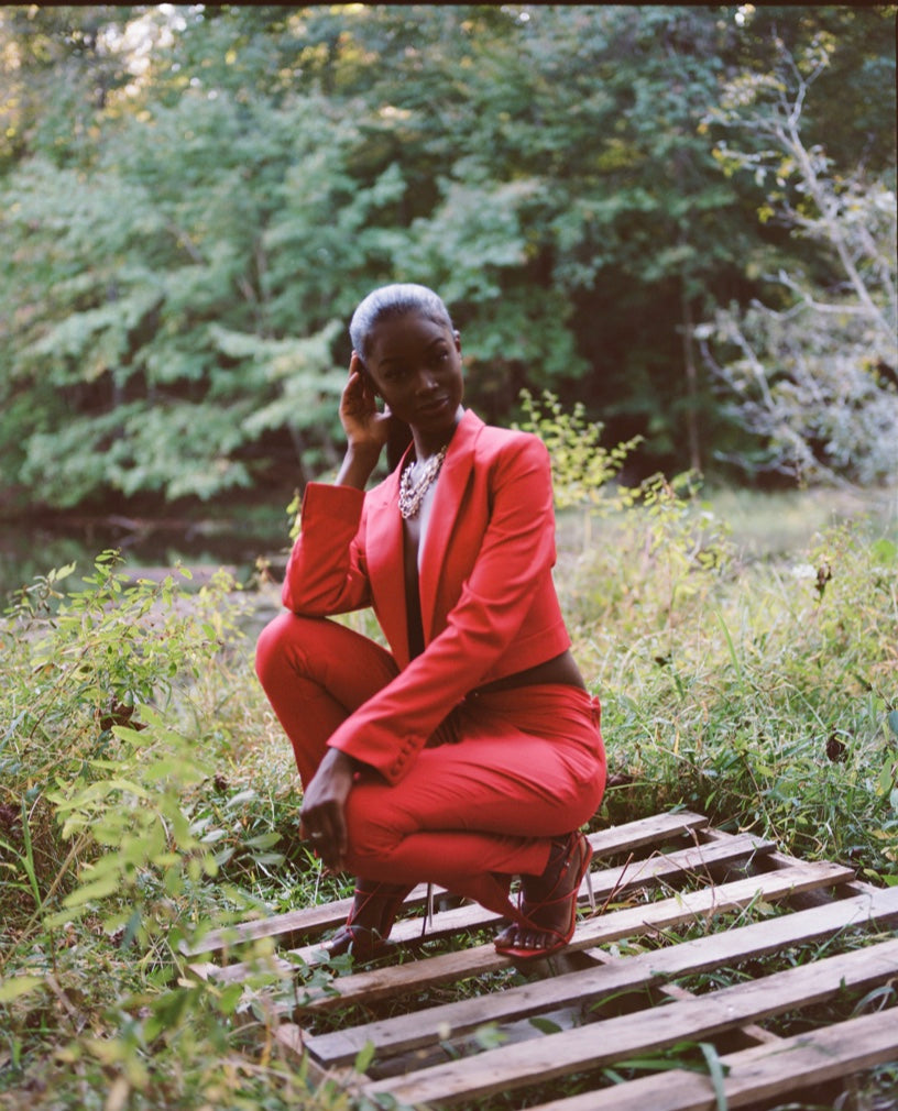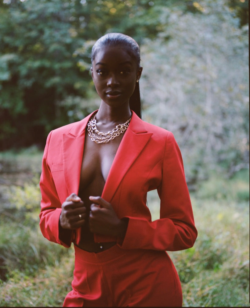 RED CROP TOP BLAZER, DOUBLE FABRIC COVER BUTTON***